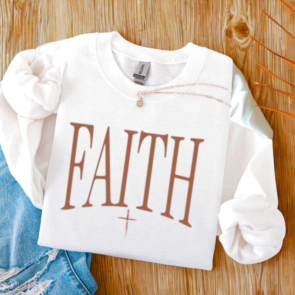 Faith casual sweatshirt. Embrace your beliefs with the Faith sweatshirt, designed for comfort and inspiration. Crafted from soft, breathable fabric, this tee keeps you comfortable all day while expressing your faith boldly. Its classic fit makes it perfect for layering or wearing on its own, making it a versatile addition to any wardrobe. Let your style reflect your values effortlessly.