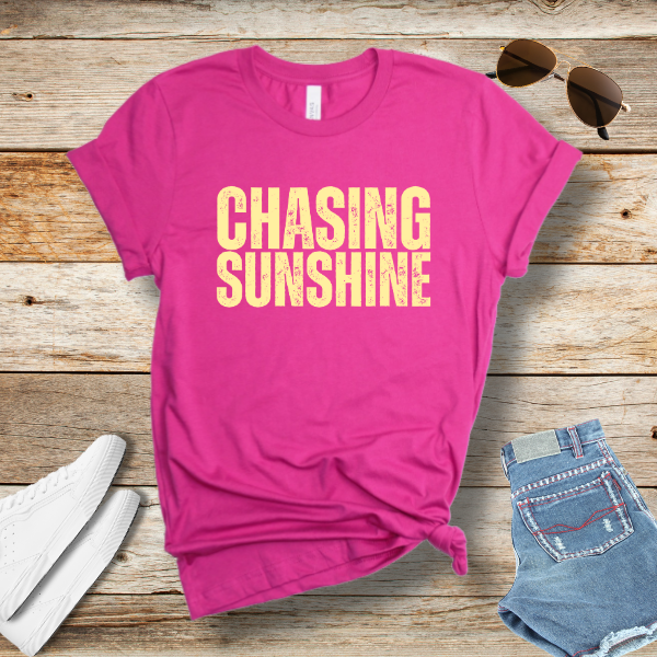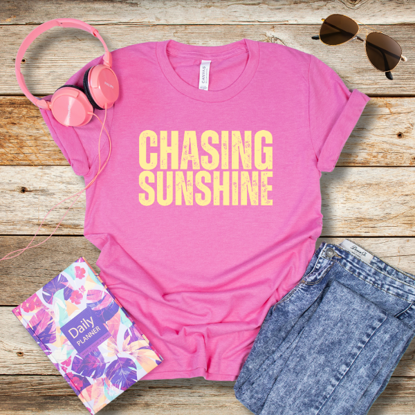 Whether you're road-tripping down the coast, lounging on the dock, or chasing sunsets with your favorite playlist, this "Chasing Sunshine" tee is made for golden hour girls and summer dreamers.