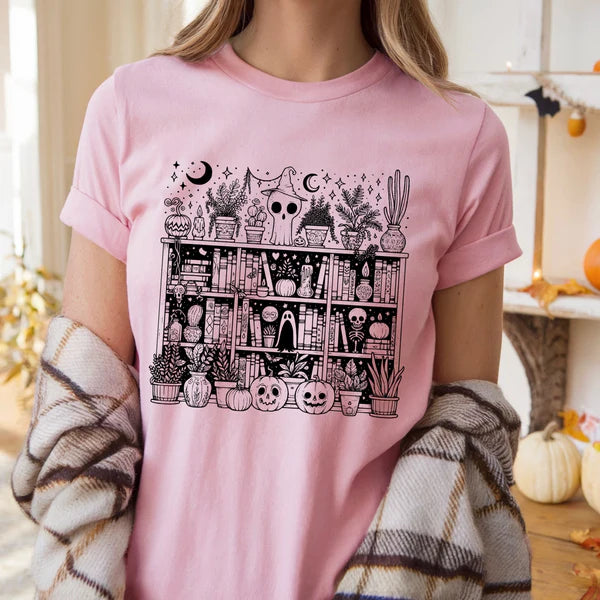 Celebrate your love for books and Halloween with this cozy Comfort Colors tee. Featuring a spooky book nook design, it’s perfect for book lovers who want to add a festive touch to their wardrobe. Soft, comfortable, and stylish, this Halloween t-shirt makes a great gift or a fun addition to your seasonal outfits. Embrace the spooky season in comfort and style!