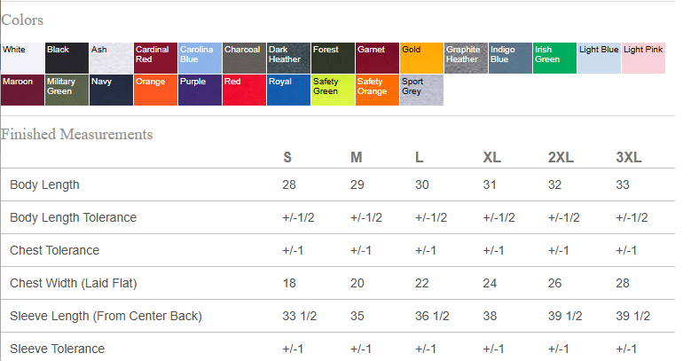 Sizes small to 2XL! When checking out add a note with the color option based on the brand chosen.