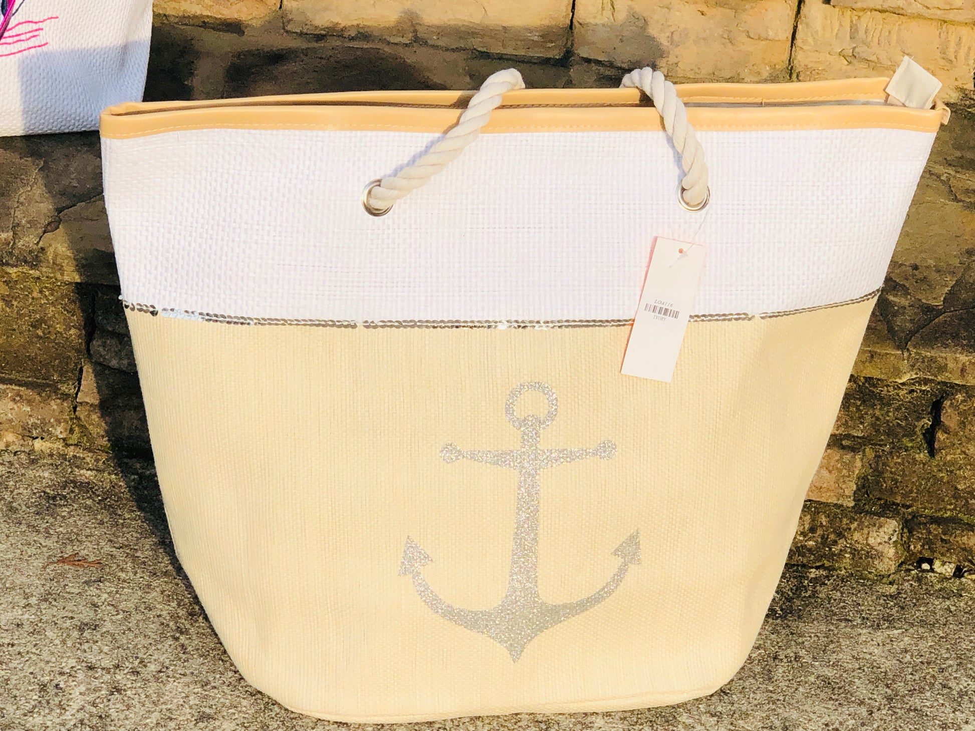 This Large Anchor Canvas Tote Bag is the perfect accessory for your next beach or pool day. Crafted from durable canvas, this bag features a top zipper closure, rope handles, and a lining inside with pockets. The anchor design adds a stylish touch, while the spacious size (approximately 20') ensures you can fit all your essentials.